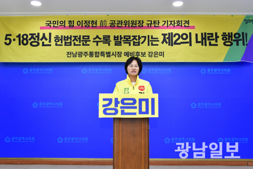 강은미 후보는 9일 광주시의회 브리핑룸에서 기자회견을 갖고 “5·18 헌법 전문 수록을 눈앞에 두고 온갖 시비로 방해를 하고 있는 국민의힘의 직전 공천관리위원장이 전남광주통합특별시장에 출마하겠다는 것은 후안무치다”고 밝혔다.