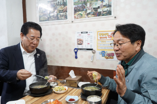 이어 인근 국밥골목에서 상인들과 식사를 함께하며 현장 목소리를 이어서 청취했다.