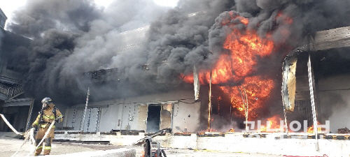 현장에서는 공장 관계자 1명(59)도 연기를 흡입해 병원으로 이송됐으나 생명에는 지장이 없는 것으로 확인됐다. 이번 화재로 창고 1개 동 대부분이 타거나 그을렸다.