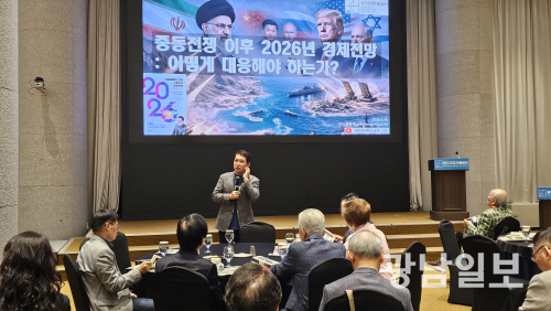 ‘경제 읽어주는 남자’로 알려진 김광석 한양대학교 겸임교수는 지난 10일 홀리데이인 광주호텔에서 열린 광주경영자총협회 제1717회 금요조찬포럼에서 ‘중동전쟁 이후 2026년 경제전망’을 주제로 강연에 나서 “우리나라 경제구조가 세계 어느 나라보다 중동산 석유의존도가 높아 중동전쟁의 영향이 가장 크다”고 언급했다.