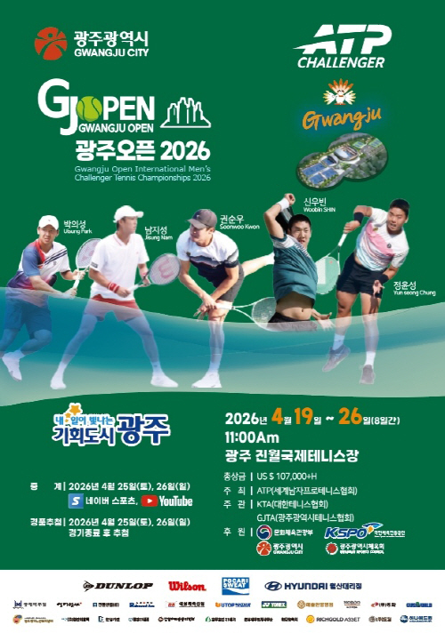 세계 테니스인들의 축제인 ‘2026 광주오픈 국제남자 챌린저 투어 테니스대회’(이하 광주오픈)가 오는 19일부터 26일까지 8일간 광주 진월국제테니스장에서 개최된다.