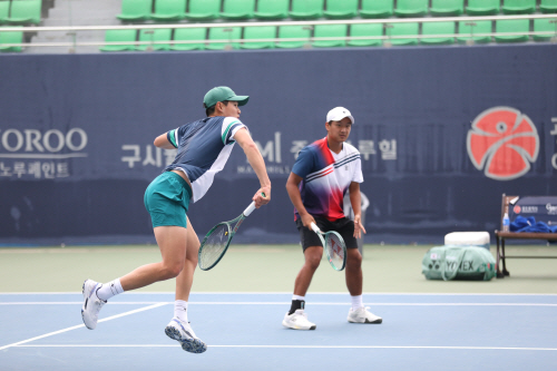 지난해 열린 2025 광주오픈 국제남자 챌린저 투어 테니스대회 권순우와 박의성이 복식 경기를 펼치고 있다. 사진제공=광주테니스협회