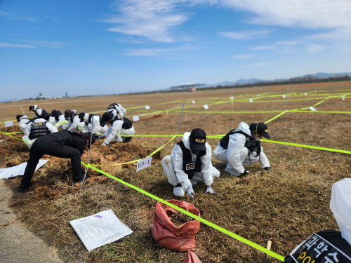 지난 13일부터 전남 무안국제공항에서 경찰과학수사대가 제주항공 여객기 참사 미수습 유해를 찾기 위해 재수색하고 있다. 사진제공=12·29 무안공항 제주항공 여객기 참사 유가족협의회