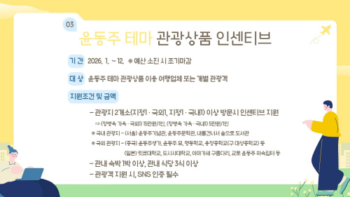윤동주 테마·개별 미션투어 등 유형별 지원 확대