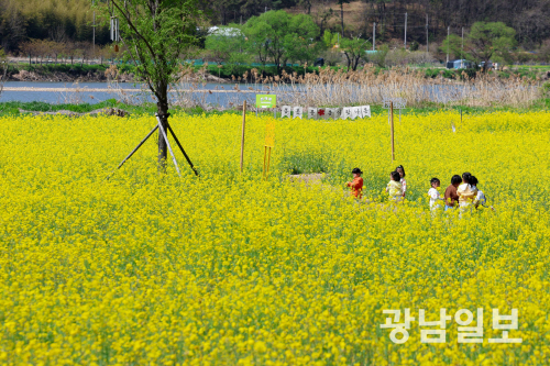 광산구 황룡강생태정원에 봄의 시작을 알리는 유채꽃이 만개했다.