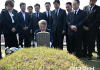 민형배 더불어민주당 전남광주통합특별시장 후보가 15일 오전 광주 북구 운정동 국립5·18민주묘지를 찾아 윤상원 열사 묘지를 참배하고 있다.