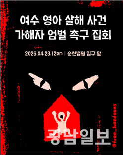 오는 23일 여수 영아 학대살해 사건 1심 선고를 앞두고 아동학대의 심각성을 알리고 재발 방지를 촉구하는 시민 추모 집회가 열린다. 특정 단체가 아닌 시민들이 자발적으로 뜻을 모아 마련한 자리로, 전국 각지에서 부모와 일반 시민들이 참여할 예정이다.