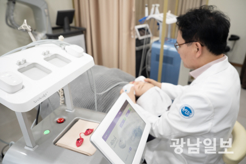 신삼식 광주 뷰티스맑은피부과의원 대표원장이 내원객에게 네오스컬프 플러스를 활용한 시술을 하고 있다.