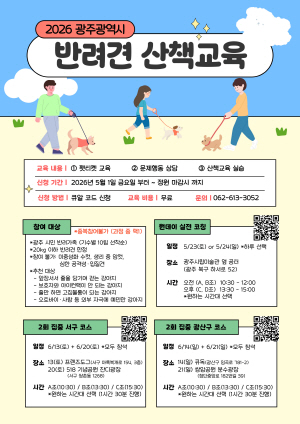 배귀숙 농업동물정책과장은 “이번 교육은 반려인이 반려견의 행동을 깊이 이해해 양육 역량을 높이는 한편 비반려인을 배려하는 올바른 산책 문화를 실천하는 계기가 될 것이다”며 “사람과 동물이 공존하는 도시, 광주를 만들기 위해 시민들의 많은 관심과 참여를 바란다”고 밝혔다.