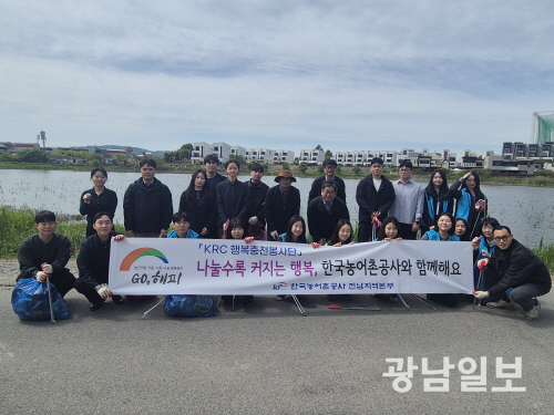 이날 전남본부 임직원들은 저수지 주변에 방치된 생활 폐기물을 수거하고 인근 쓰레기를 정리하는 등 환경 정화 활동을 펼쳤다. 특히 깨끗한 농업용수를 공급하기 위한 현장 홍보 활동도 병행해 지역민들의 큰 호응을 얻었다.