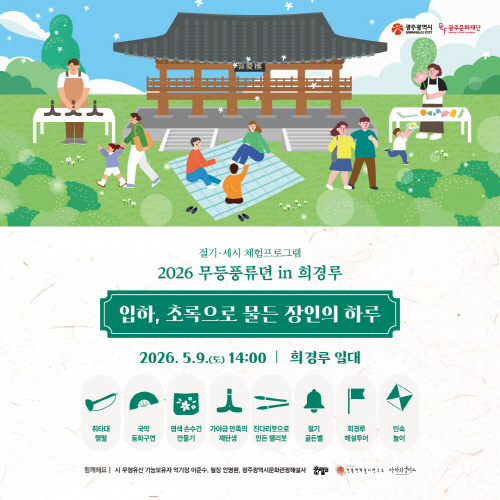 오는 5월 9일 오후 2시부터 5시까지 희경루 일대에서 열리는 이번 행사는 ‘입하, 초록으로 물든 장인의 하루’라는 주제로 여름의 시작을 알리는 절기를 체험할 수 있도록 구성됐다.