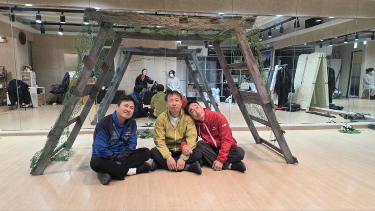 극단 깍지는 오는 30일부터 5월2일까지 민들레소극장에서 연극 ‘세 친구_기동타격대’를 선보인다. 사진은 연습 모습. 사진제공=극단 깍지