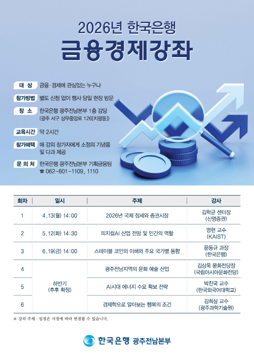 한국은행 광주전남본부, 내달 12일 두번째 금융강좌