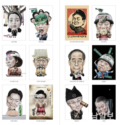 내란 관련자들의 캐리커처